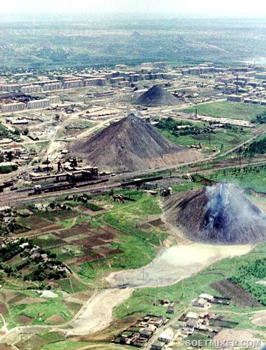 Донецк. На заднем плане виден затопленный карьер (?). Сейчас на этом месте областной дворец пионеров и ЦНТБ: