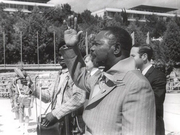 Тут ничего удивительного. Если у членов партбюро не было порядочных друзей, оставалось дружить с каннибалами, диктаторами, убийцами и прочими руководителями стран-лузеров. Этот псих каннибал съел всех своих любовниц, а так же баловался субпродуктами расстреляных за политические убеждения своих политических оппонентов. Это показывает маразм руководства цк ссср устроить торжественный приём таким личностям.
