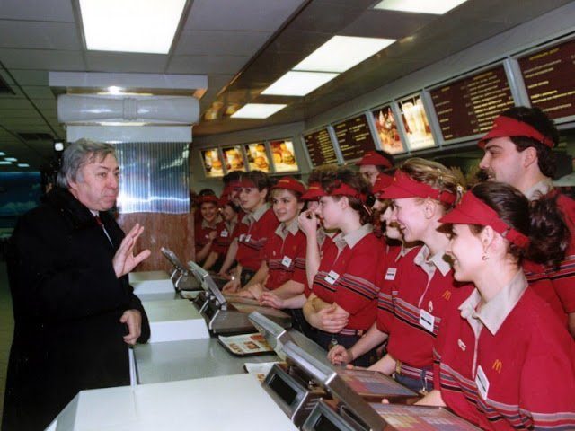 Власти были очень заинтересованы в этом предприятии, поэтому они лично пришли поприветствовать рабочих «Макдоналдс» в их первый день