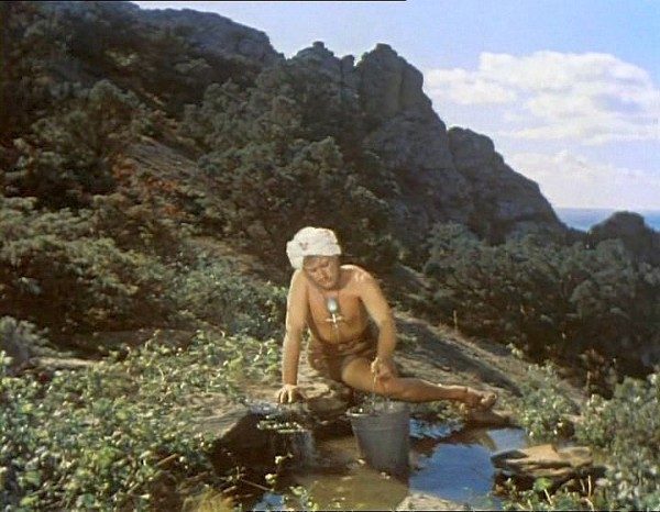 Поскольку вина у актеров было хоть залейся, а пресной воды мало, привозную бутыль берегли для умывания (мылись в тазиках, как настоящие «дикари»), а жажду утоляли «напитком богов». Кстати, источник Святой Анастасии, к которому в фильме ходил по воду Миронов, находится дальше, чем подразумевается в картине: у дороги из Судака в Новый Свет.