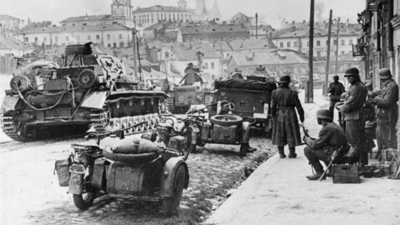 Колонна 12-й танковой дивизии вермахта в Минске В начале Великой Отечественной войны Белорусская ССР приняла на себя один из главных ударов вермахта. Несмотря на отчаянное сопротивление советских войск, нацисты стремительно продвигались по территории БССР. 28 июня 1941 года пал Минск, а к началу сентября была оккупирована вся территория республики.