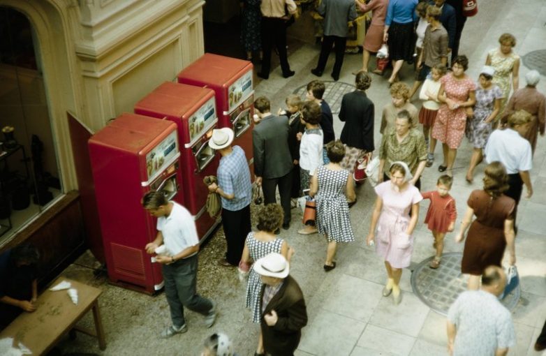 Вот именно эти автоматы для газировки с двумя окошками — это моё детство… И стойки для газировки у продавцов, с двумя трубками для сиропа… Тогда казалось, что по-другому и быть не может…