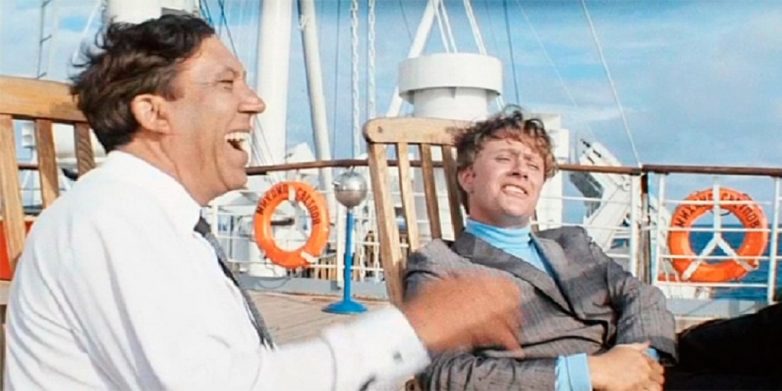Туристы из СССР на палубе теплохода, плывущего по Дунаю.