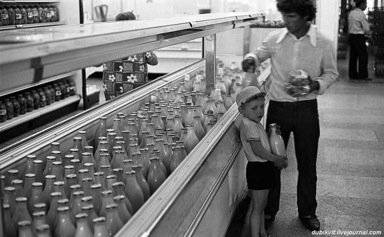 За молоком ходил каждый школьник. После школы мы очень часто шли незадолго до конца обеденного перерыва в гастроном или магазин «Молоко». Там стояли среди других школьников, молодых мам с колясками и пенсионеров, ожидая, когда толстая продавщица в белом несвежем халате откроет двери магазина. Затем все устремлялись по отделам.