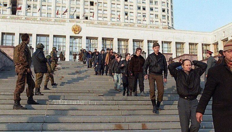 Те, кто не смог лично присутствовать на этом зрелище, наслаждались им по телевизору. Пронырливые западные журналисты установили на гостинице „Украина“ камеры и, попивая кофе и пожевывая круассаны, показывали происходящее в прямом эфире. Пронеслись тревожные слухи, что на помощь Белому дому вышла из Рязани колонна бронетехники. Однако через несколько часов опасность миновала. Под Бронницами, удивленный необычным транспортом, колонну остановил гаишник и учинил проверку документов. Пока ругались, разбирались, орали, уговаривали и подкупали стойкого стража дороги, Белый дом пал.