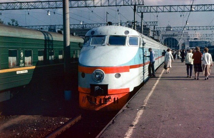 ЭР200 — советский скоростной электропоезд постоянного тока на Ленинградском вокзале в Москве, 1988 год