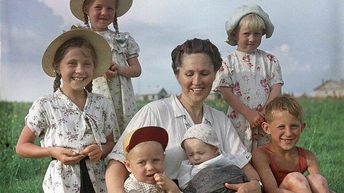 Весовщица совхоза «Краснодарский» Анна Андреевна Подгорбунских и ее дети, 1958 год