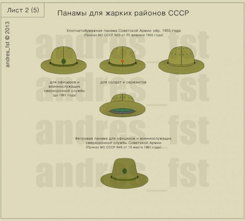 Панамы в 50-х годах.Как и прежде, солдатам, сержантам и курсантам панама выдавалась взамен хлопчатобумажной пилотки, а с 30 мая 1969 года она стала обязательной принадлежностью формы одежды только этих категорий военнослужащих.