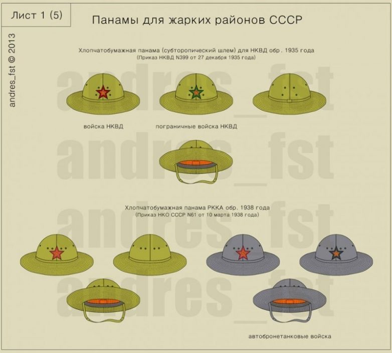Предполагалось, что его можно будет использовать для комбинированной носки со стальным шлемом. В просторечии новый головной убор стали называть панамой. Впрочем, и в приказе речь шла о панаме, однако предпочтительнее говорить о субтропическом шлеме, ибо это изделие разрабатывалась по образцу хлопчатобумажного субтропического шлема, введённого в войсках НКВД 27 декабря 1935 года.
