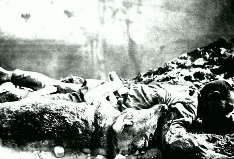 Погибшие в Брестской крепости красноармеец и его служебная собака. Место съемки: Брест, Белоруссия, СССР. Время съемки: 22-30.06.1941