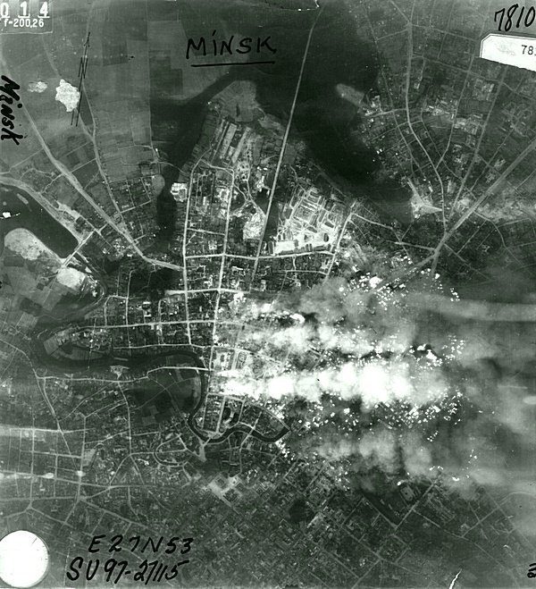 Аэрофотосъемка пожаров после налетов люфтваффе на Минск 24-25 июня 1941 года.