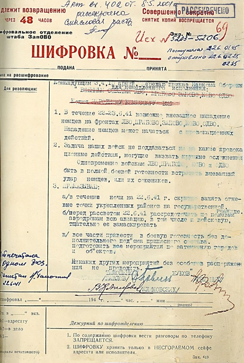 Минобороны России опубликовало рассекреченные документы первых дней Великой Отечественной войны