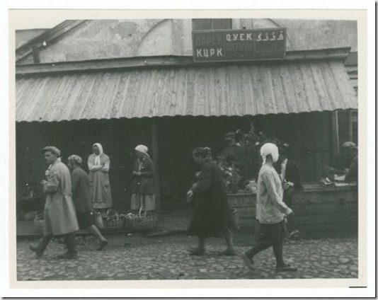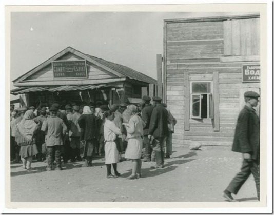 1. Советские граждане внимательно смотрят на заезжего американского фотографа у заведения под вывеской «ЦентроСПИРТлавка».