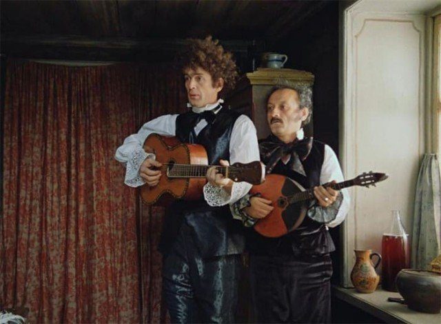 А тот перевод песни о бедном рыбаке, где в финале «в общем, все умерли», как говорил герой Абдулова в фильме, не имеет к ее содержанию никакого отношения. Вместо Семена Фарады, не отличавшегося выдающимися вокальными данными, в дуэте с Абдуловым пришлось петь автору песни – Геннадию Гладкову. Тексты всех остальных песен в фильме написал Юлий Ким. Кроме того, Гладков появился и в одном из эпизодов: он сыграл роль слуги Федяшевых, который произносит одну-единственную фразу: «С кого ж такую лепили?».