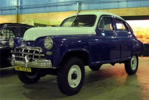 М-72 вездеходОднако потребность в комфортабельных полноприводных автомобилях после войны не исчезла – как армии, так и народному хозяйству требовалась машина с закрытым отапливаемым кузовом, как у автомобиля ГАЗ-20 Победа, которая имела бы такую же проходимость, какую имел появившийся в 1953 году автомобиль ГАЗ-69. Поэтому, когда Горьковскому автозаводу поручили проектирование такого автомобиля, конструкторы, недолго думая, решили создать гибрид «Победы» и ГАЗ-69. На всю конструкторскую работу по проектированию М-72 все ушло буквально три дня. Ещё месяц понадобился для сборки опытного образца. В результате 24 февраля из ворот Горьковского автозавода вышел М-72 стала первой в мире полноприводной легковой машиной с безрамным несущим кузовом. Изменения в победовском кузове были самыми минимальными.