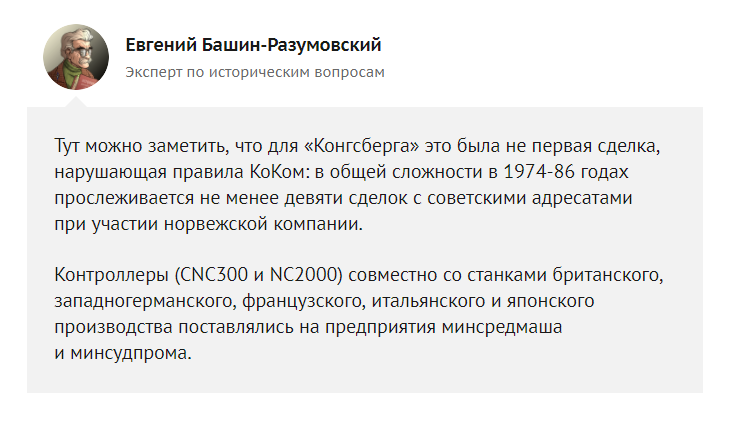 Кроме того в сделку затащили норвежскую госкомпанию «Конгсберг Вапенфабрик» — те должны были поставлять сложные устройства NC2000 с числовым программным управлением (контроллеры для станков).
