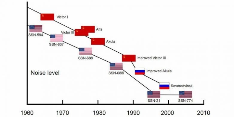 Информацию о «драматическом» снижением шумности советских лодок III поколения, построенных во второй половине 1980-х годов и позже, легко можно обнаружить в специальной литературе.
