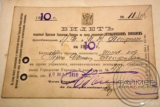 Водительское удостоверение 1910 года