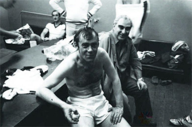 Валерий Носик в раздевалке стадиона «Химик» в перерыве между таймами футбольной игры команд «Гонорар-82» и артистов Малого театра, 1982 год. Фото Григория Шалакина