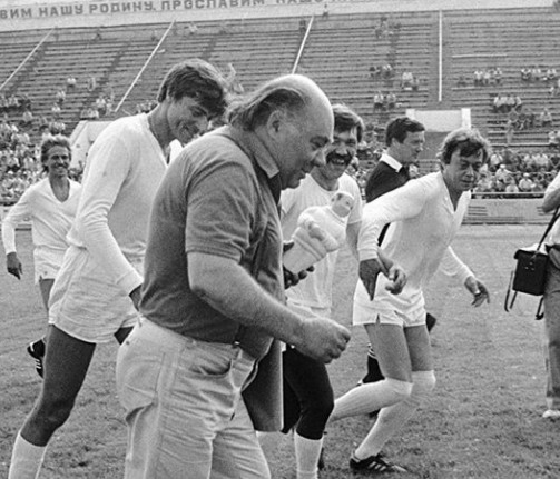 Армен Джигарханян перед матчем артистов театра им. Маяковского и театра им. Цвиллинга. 1980-е годы. Фото С. Переплётчикова из фонда ЦИКНЧ
