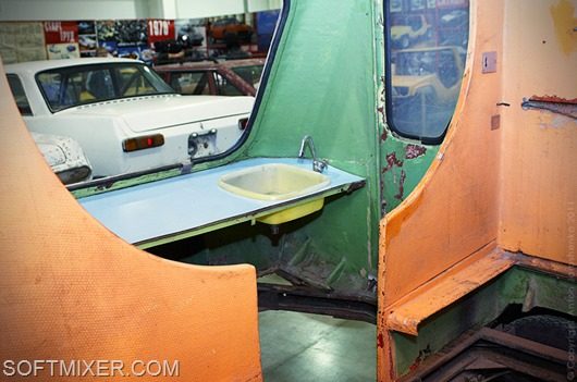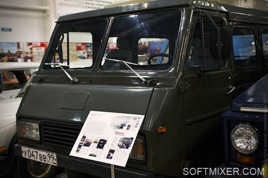 Микроавтобус повышенной проходимости. До перестройки регистрация грузовых автомобилей в собственность частных лиц запрещалась. Именно поэтому А.К. Мишуков (автор этого авто) собрал его на шасси УАЗ-452. Двигатель от ЗМЗ-24Д.