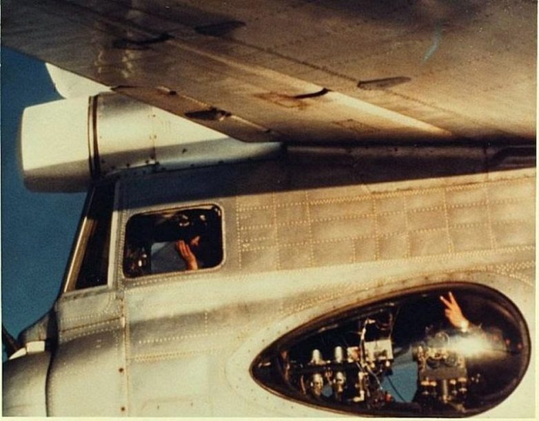 Лётчик экипажа самолета Ту-95, сигнализирует пилоту истребителя НАТО. 70-е
