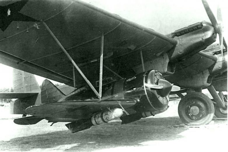 Истребитель И-16 на подвеске бомбардировщика ТБ-3. СССР, 30-е