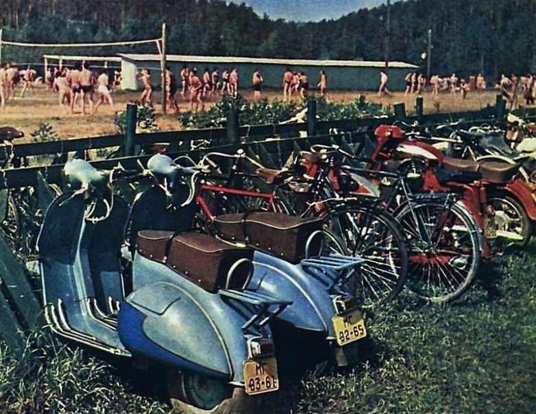 Советские мотороллеры в московском Серебряном Бору, созданные по образу и подобию итальянской ВЕСПЫ.