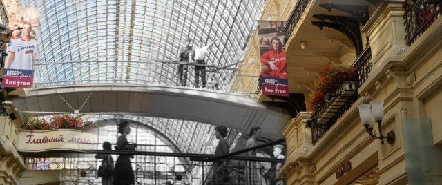 Предлагаем вам посмотреть на интересный проект Ивана Краснова, который показывает, как ранее Москва выглядела в кино, и как она выглядит сейчас.