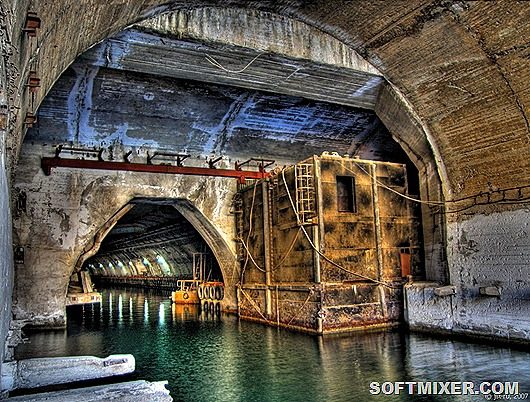 Это был гигантский построенный на века комплекс, способный выдержать ядерный удар, под его сводами могли разместиться одновременно до 14 подводных судов. Эту военную базу построили в 1961 и забросили в 1993 году, после чего ее разобрали по винтикам местные жители.
