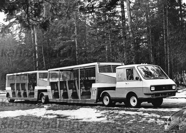 РАФ-3407+9225+9226 – пассажирский автопоезд для перевозки жителей Олимпийской деревни. В первоначальном варианте предлагался с тремя полуприцепами вместимостью по 20 человек каждый