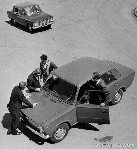 Образец легкового автомобиля «Жигули» ВАЗ-2101, изготовленный итальянской фирмой «Фиат» и принятый для производства на Волжском автомобильном заводе в Тольятти. 1968 г. Фотохроника ТАСС