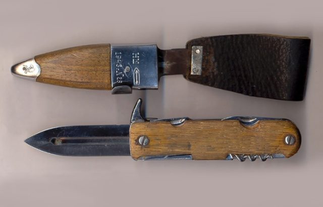 Интересно, что нож был фактически боевым. Экспериментальный НШ оснастили лезвием кинжального типа, которое не до конца пряталось в рукоятку. Поэтому у первого советского универсального складного ножа все еще были ножны, причем весьма необычные. У инструмент получил надежный замок-фиксатор, который удерживал клинок с разложенном состоянии. В рукоятке НШ находились отвертка, шило, штопор, консервный нож. Рукоятка была изготовлена из стали, а ножны из дерева.