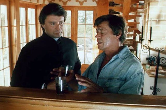 8. «Белые росы». Здесь Николай Караченцов играет весельчака Василия, младшего из трех сыновей главного героя, Федора Ходоса. В этой роли тоже важна музыкальная составляющая – герой Караченцова почти неотделим от своей гармошки.