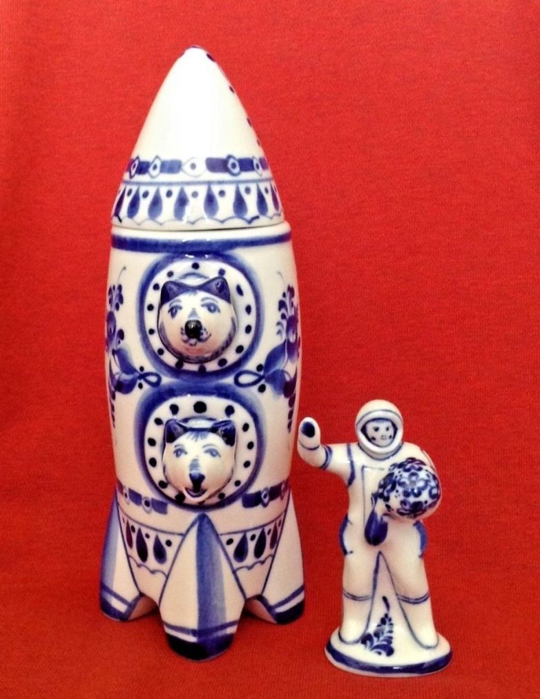 В 1960 году советские собаки-космонавты Белка и Стрелка стали первыми животными, которые совершили орбитальный космический полёт и успешно вернулись на Землю. В честь этого знаменательного события эти очаровательные собаки были увековечены на плакатах, марках, открытках, фантиках и на других вещах. В честь них даже наладили выпуск необычных фарфоровых статуэток в стиле Гжель.