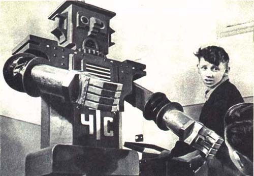 Первый советский робот, получивший название «В2М», был создан в 1936 году школьником Вадимом Мацкевичем. Впоследствии Вадим Мацкевич стал примером для новых поколений изобретателей: на основе «В2М» на станции юных техников школьники собрали робота-гиганта. А робот, как устройство в классическом понимании, был создан в 1966 году в воронежском институте ЭНИКмаш – это был автоматический манипулятор для переноса и укладывания металлических листов.