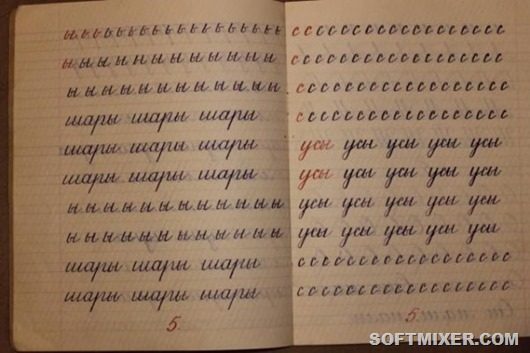 Интерсно, а тетради почему-то без полей. Я ещё застала промокашки, но поля были с первого класса во всех тетрадях. Если в заводском варианте не было — сами рисовали. А вот постановка руки — хорошее дело. Сейчас этим не занимаются в школе и почерк — жесть.