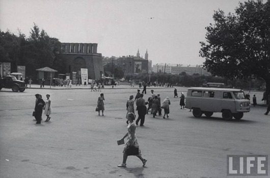 Москва. Лыжники у Белорусского вокзала, 1958 г.