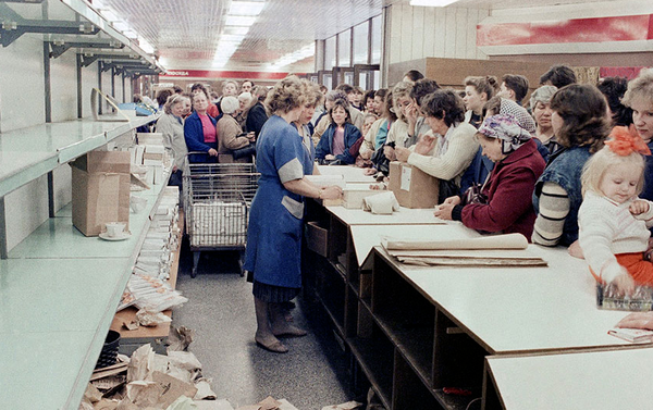 Читаю комментарии и диву даюсь. Сейчас положительно оценивают ситуацию только те, кто не жил в то время или просто был чем то обижен в то время. Зачем понадобился рыночный курс доллара, в то время? Он вообще не нужен был. Считалось, что тогда обувь за границей, была лучше. Но, это длилось только до тех пор, пока не купил заграничные сандалии, после развала СССР. Пока дошел в них домой, все этикетки прилипли к носкам, а сами они расползлись… Тираспольская обувная фабрика продолжала печатать советскую обувь и ее обувь стала цениться выше импортной. Это факт. Только Молдавия отправляла сотни вагонов овощей и фруктов (не фур, а вагонов). С дальнего востока вагоны рыбы. Где сейчас рыба и ее красная цена? Ни одну страну мира не омывает столько морей и океанов! В Украине, колхозы получали вагоны сос свежей рыбой для откорма свиней. То, что сейчас происходит в магазинах, так называемое изобилие. Это еще хуже, чем дефицит. Люди, в большинстве своем просто не могут купить. А дефицит, постоял да и взяп. Хочешь купить, займи очередь не хочешь иди домой. Имели и колбасу и к ней. Это действие теле пропаганды в течение 30 лет. Тот кто платит, заказывает и музыку. Для советского народа, было дикостью, узнать как в 60-тые года США вывозила в океан и сбрасывала рыбам миллионы тонн зерна, что бы не снизить цены на рынке. А теперешние бизнесмены считают это нормой. Потому что цены никогда не снижаются… Молодежь! Ищите и смотрите советские фильмы, а не пародии на них, которые сочиняют сильные мира сего…