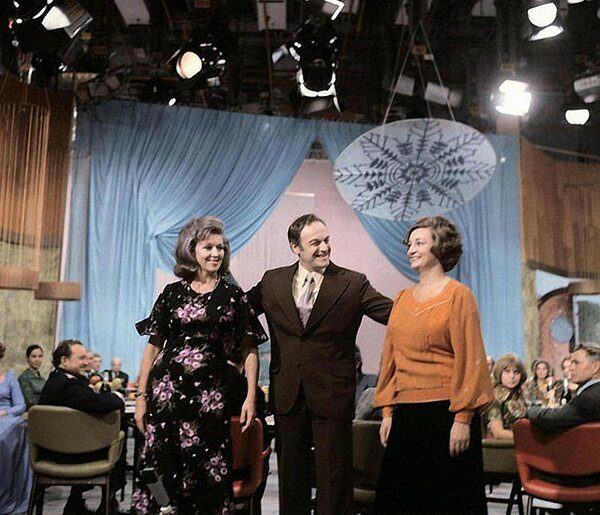 Ведущие новогоднего Голубого огонька (слева направо) Валентина Леонтьева, Игорь Кириллов и Анна Шилова. 1974 год Фото Виталия Созинова