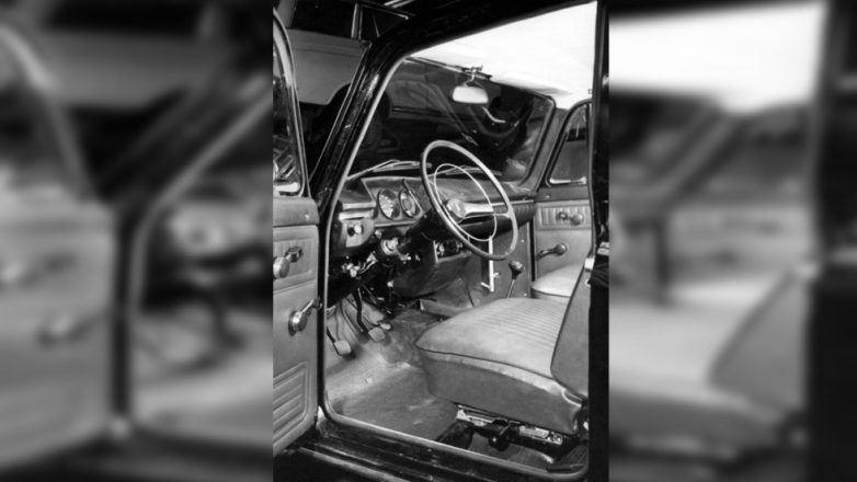 Салон ижевского Москвича первых выпусковПочти новая оснастка для изготовления мягкой панели оказалась «не у дел» и подлежала утилизации. Главные инженеры В.Т. Позднеев в Москве и Ю.Д. Маслюков в Ижевске быстро нашли общий язык, и всё оборудование под мягкую панель и накладки стоек передали «Ижмашу». Там это не пропавшее зря добро проработало до полного износа… наступившего как раз к началу XXI века. Именно этим объясняется, что в 1976 году, отстав от АЗЛК на 5 лет, ИЖ внедрил мягкий салон и вместо центрального плафона освещения от Москвича-402 образца 1956 года установил пару «жигулёвских» фонариков на стойках.