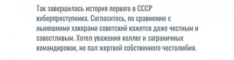 Я не буду спрашивать о дискетах в 1982 году — автору, конечно, виднее… но почему кырдырбаев назван ПЕРВЫМ хакером, если, согласно тому же автору, в «1979-м в Вильнюсе аферисты похитили при помощи цифрового оборудования 78 584 рубля. Через два года аналогичное преступление совершили в Бресте» — разве 1982 год наступает раньше 1979?? Герой вышеизложенной душещипательной истории должен именоваться третьим хакером, а никак не первым!..