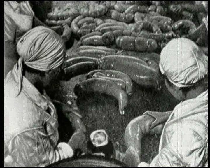 А.Микоян изучает опыт США и заимствует рецептуру и технологию приготовления т.н. «варёнки» — сосисок, колбас, изготовленных путём варки мясного фарша.