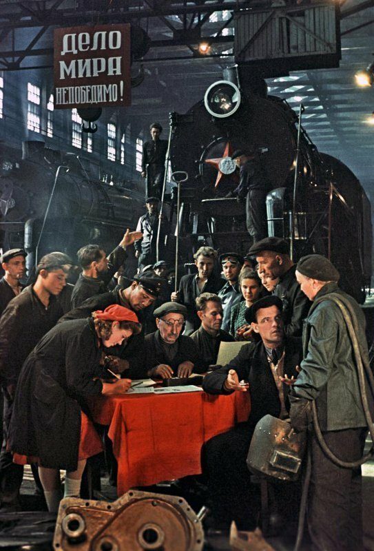 Подписывают рабочие и служащие Коломенского Ордена Ленина и Ордена Трудового Красного Знамени паровозостроительного завода им. В.В. Куйбышева, 1951 год.Всероссийский смотр сельской художественной самодеятельности в Большом театре.