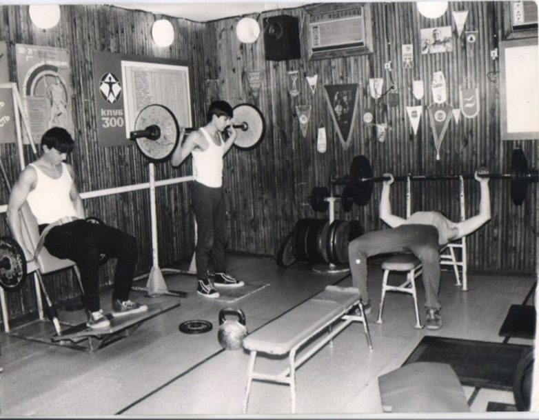 Люберцы. Культуристы в тренажерном зале ГПТУ 10 имени Ю.А. Гагарина.