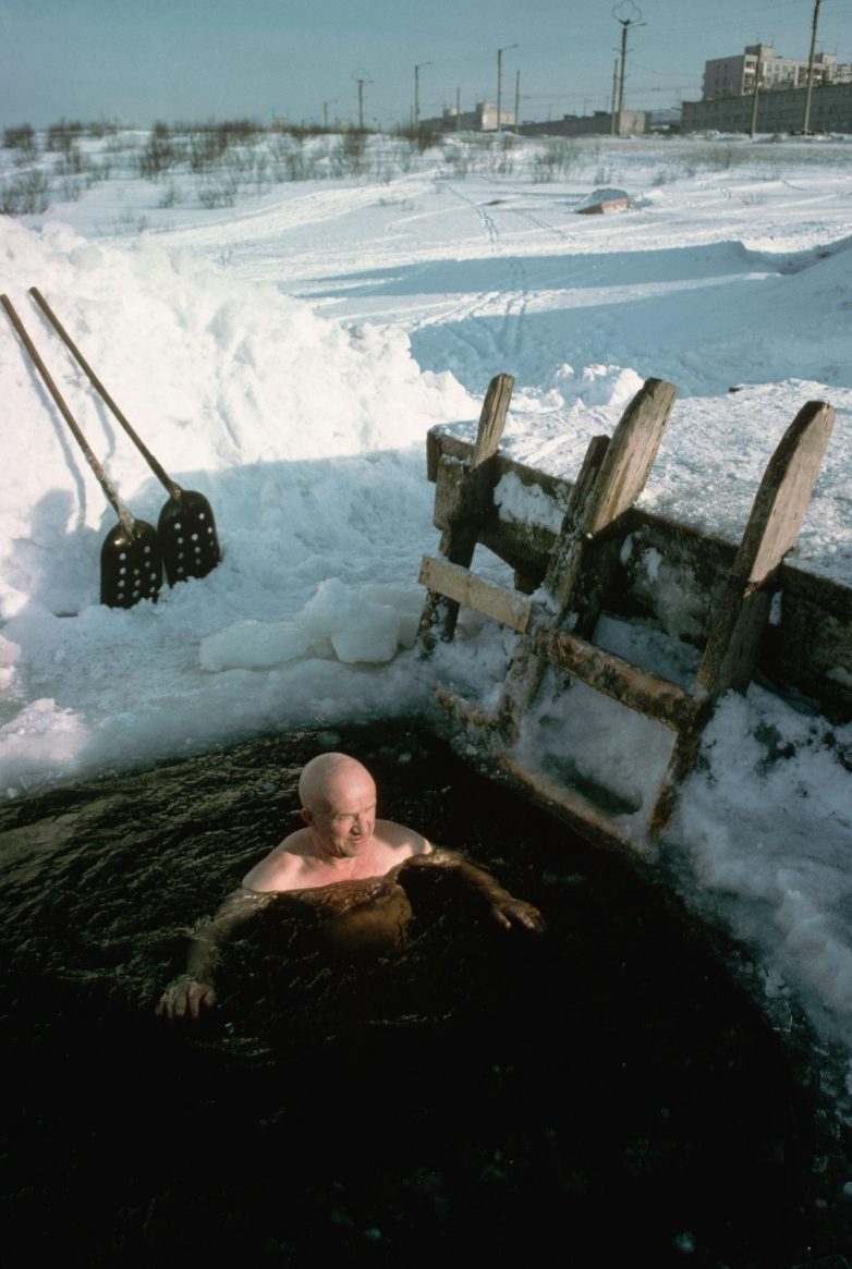 1975. Житель Мурманска ежедневно окунается в прорубь