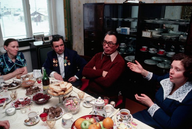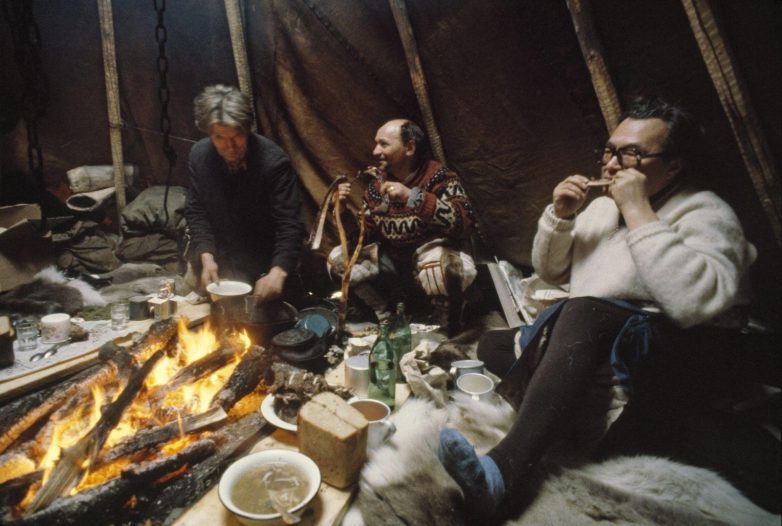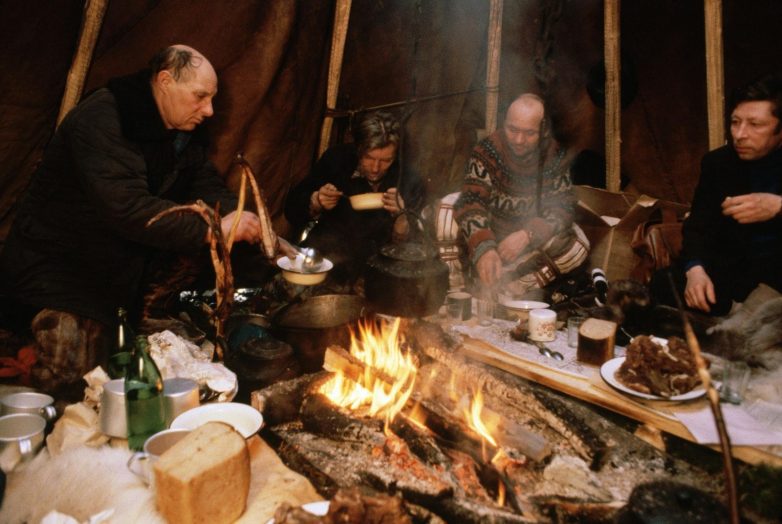 1980. Чукотский писатель Юрий Рытхеу обедает в доме оленевода-саами и его семьи. Ловозеро
