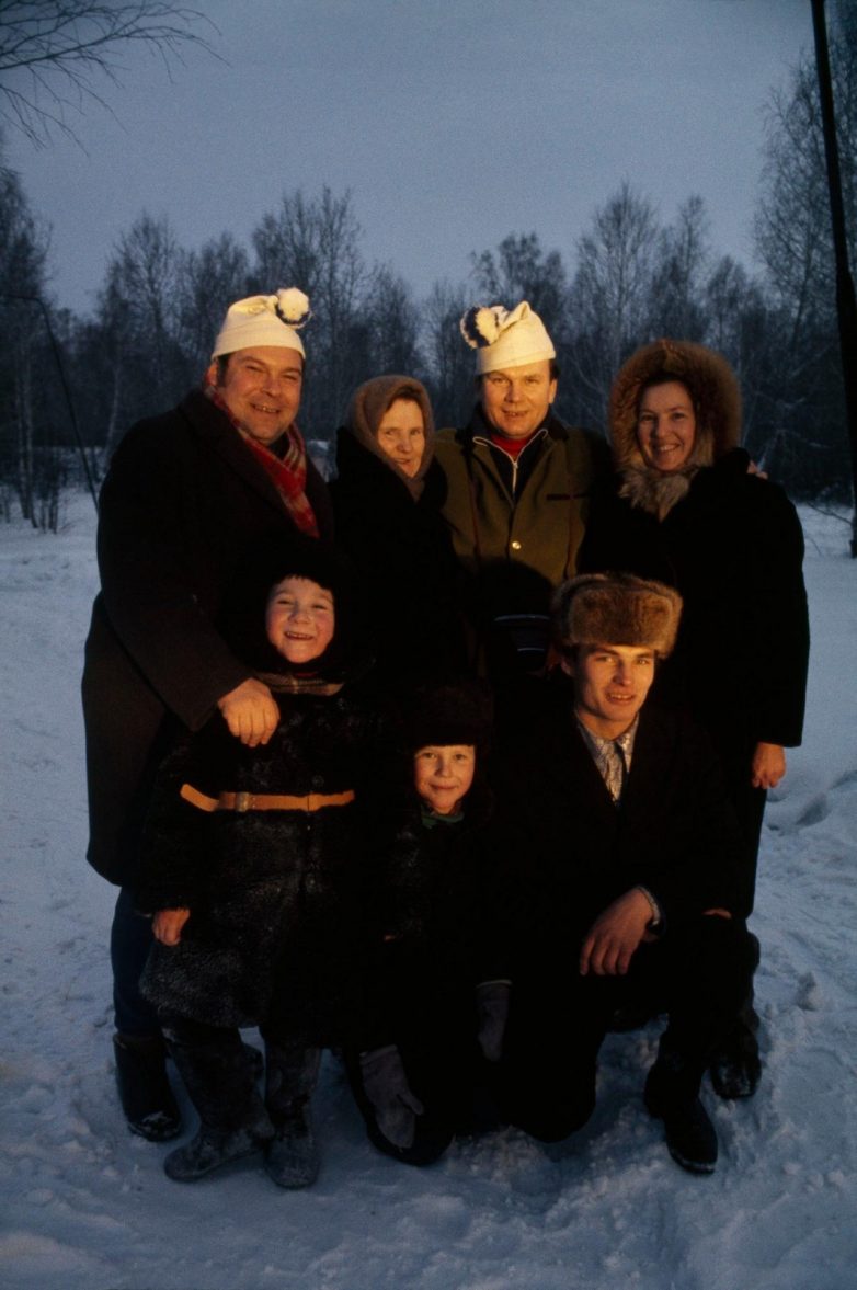 1977. Семья собирается на снегу для группового портрета