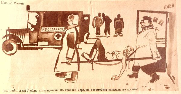 Журнал «Крокодил». Выпуск №5. 1927 г.Пьянство – проблема вечная, которая будет преследовать человечество на протяжении всего его существования. Ни СССР, ни какая другая страна не была застрахована он этого зла. Очень грустная карикатура на самом деле…