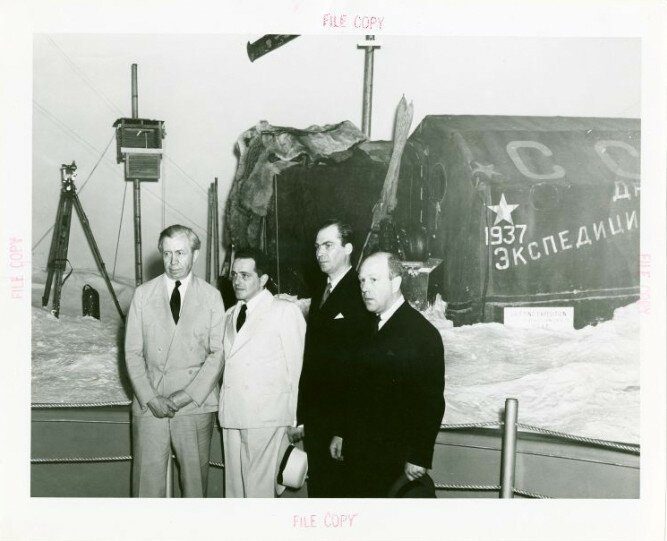 На первом этаже павильона работал сувенирный магазин, где продавали книги, газеты, пластинки с русской и советской музыкой и различные сувениры с символикой выставки и павильона. На этом знакомство с главным зданием советской экспозиции можно было считать оконченным. Неподалеку находилось еще одно строение входившее в советскую экспозицию — Арктический павильон. Внутри можно было посмотреть на оригинальное оборудование использовавшееся во время экспедиции Папанина, на большую модель ледокола „Сталин“, и стенды рассказывавшие о всех этапах трудного пути освоения Артики.